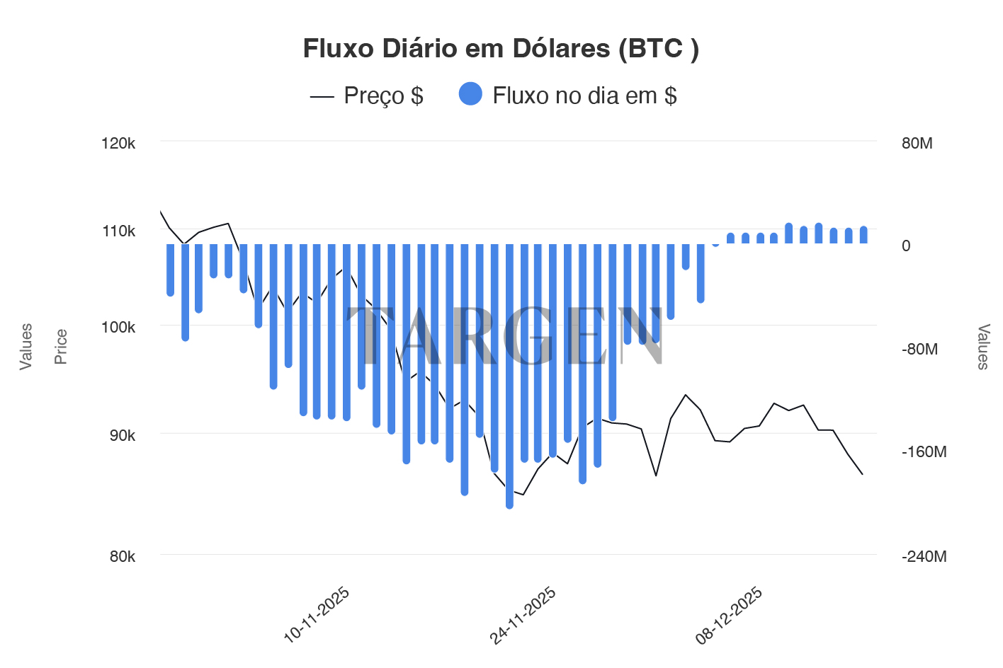 Desde o dia 16/12/2025, os dados mais recentes mostram uma inflexão. A sangria estancou. Ao longo da última semana, o fluxo de ETFs de Bitcoin voltou a apresentar entradas líquidas positivas.